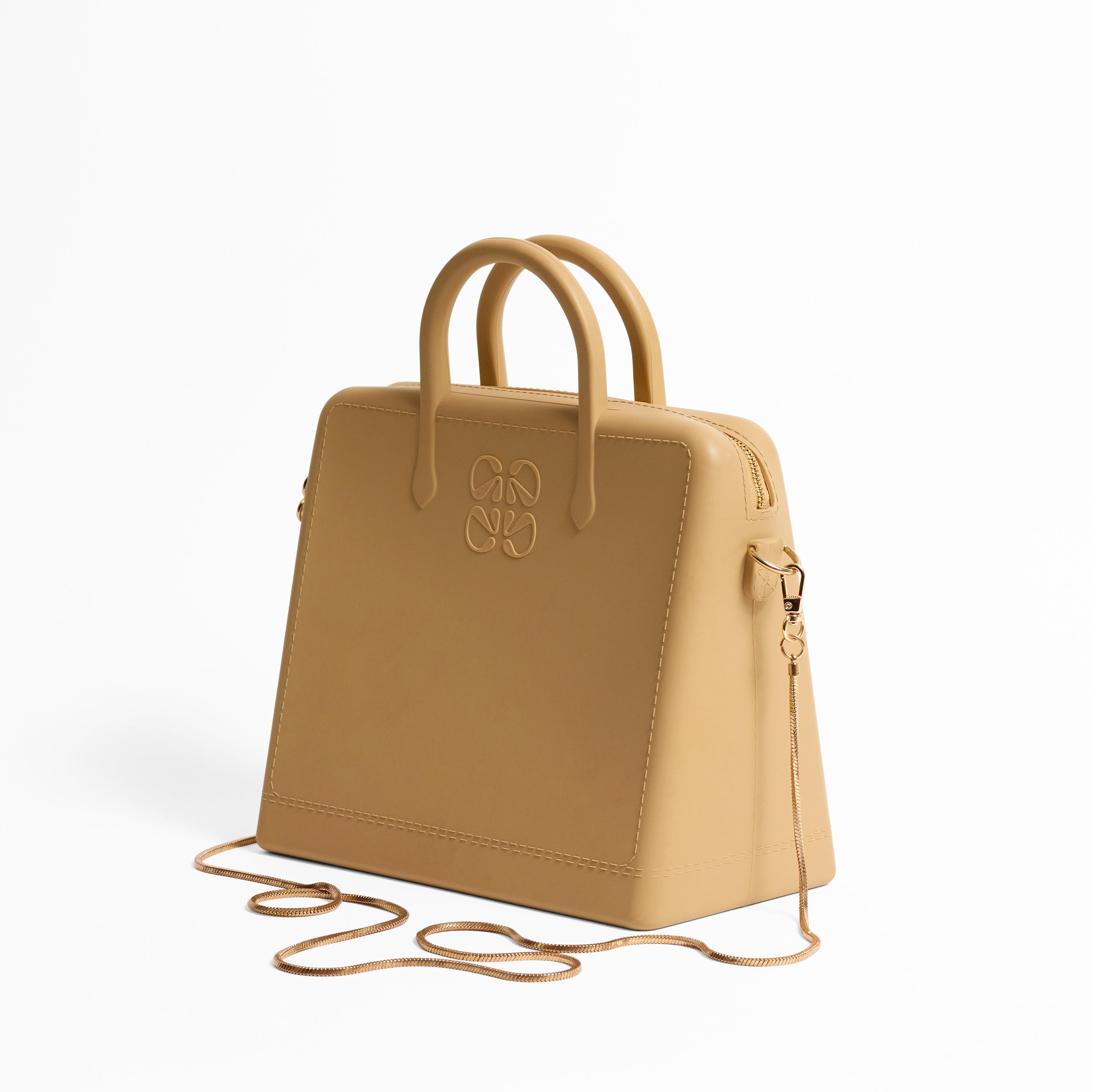Meet the bag that started it all - the Chérie handbag. This classic medium-sized bag features a double handle that can be used with or without its straps. Made of Platinum silicone, it's both durable and chic. This classic can be dressed up or down to suit your look. The Chérie comes with our signature Snake Chain Strap.